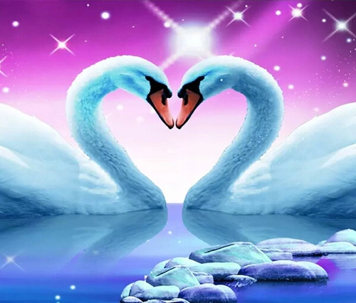 Malowanie Po Numerach Łabędzie,Serce50X40 Cm Na Ramie