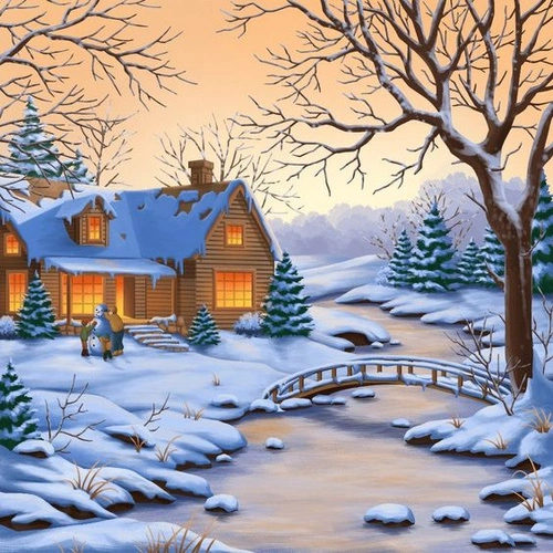 Malowanie Po Numerach Lepienie Bałwana Przd Domem 50X40 Z Ramą Kreatywne