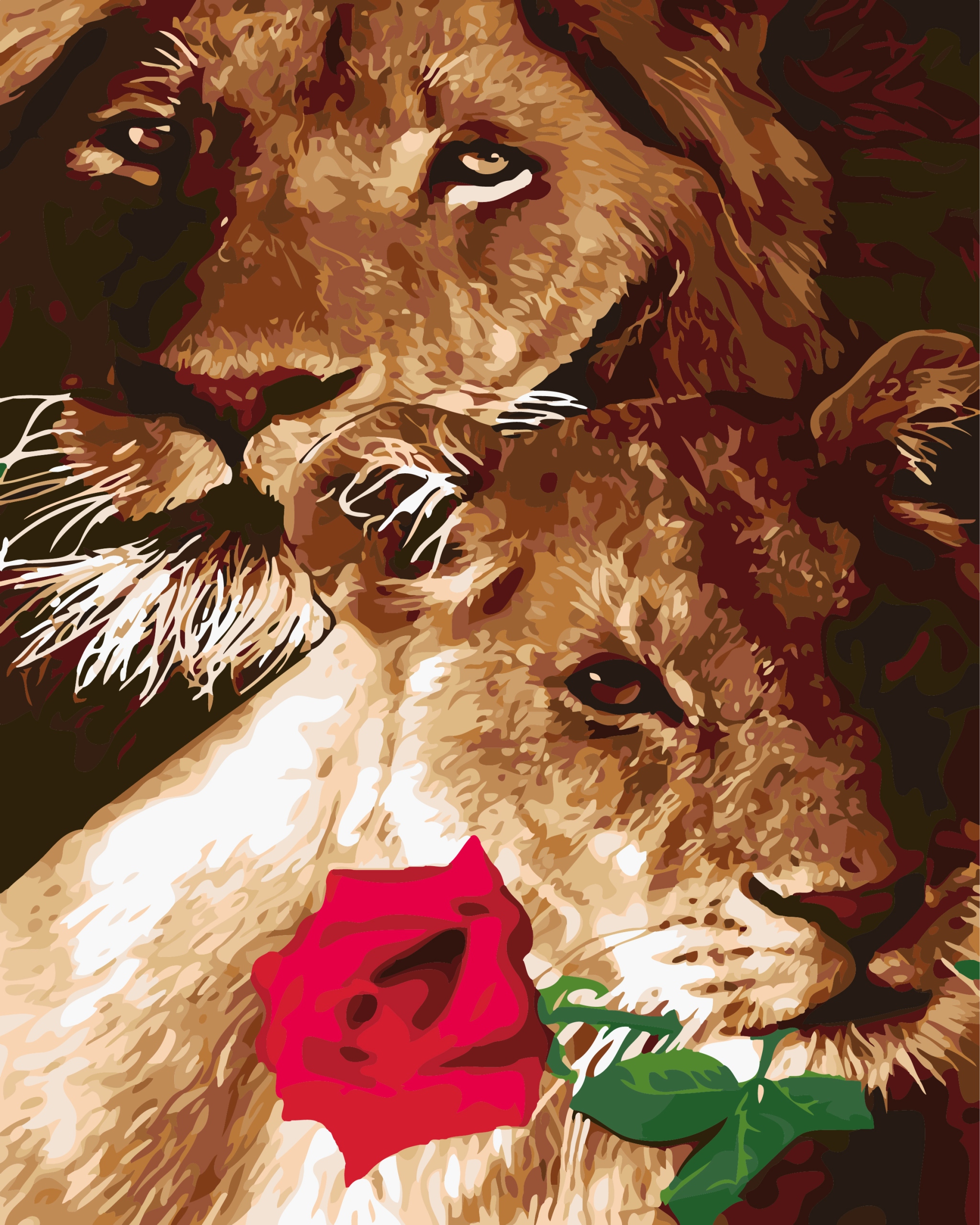 Malowanie Po Numerach Lew i Lwica z Różą 50X40 Cm Na Ramie Kreatywne