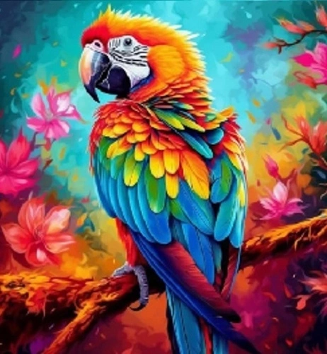 Malowanie Po Numerach Nastroszona Kolorowa Papuga 40X50 Cm Na Ramie