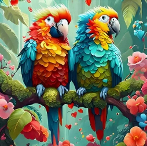 Malowanie Po Numerach Papugi W Dżungli 40X50 Cm Na Ramie Kreatywne