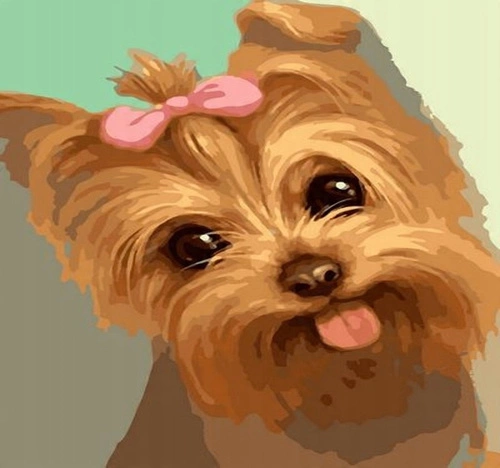 Malowanie Po Numerach Piesek York Z Kokardą 50X40 Cm Z Ramą Kreatywne