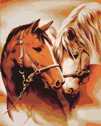 Malowanie Po Numerach Przytulajace Się Konie Portret 50X40 Z Ramą