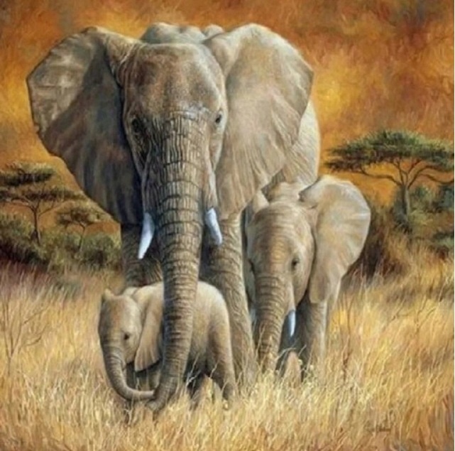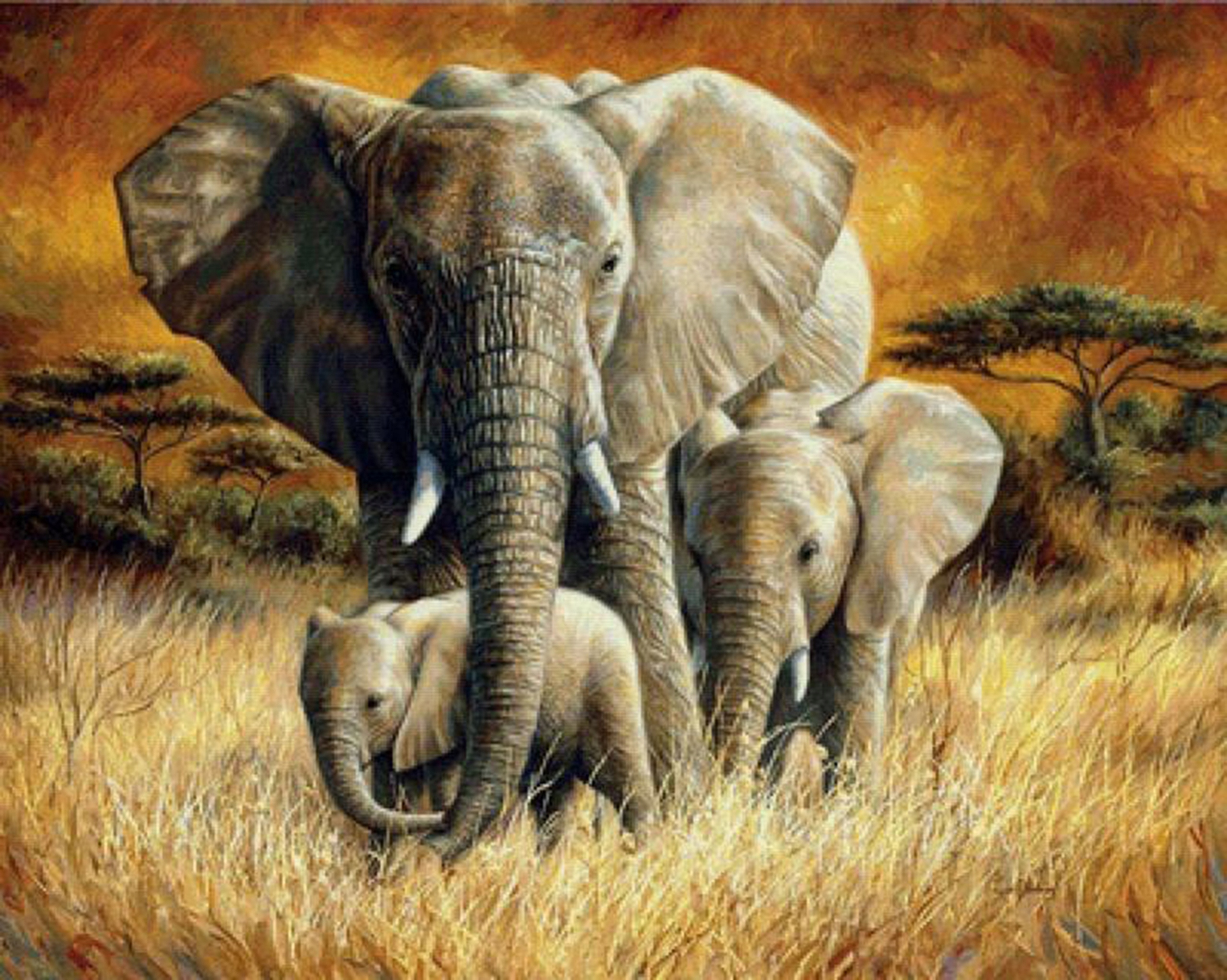 Malowanie Po Numerach Rodzina Słoni W Afryce 50x40 Z Ramą