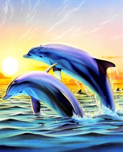 Malowanie Po Numerach Skaczące Delfiny w Morzu 50X40 Cm Na Ramie Kreatywne