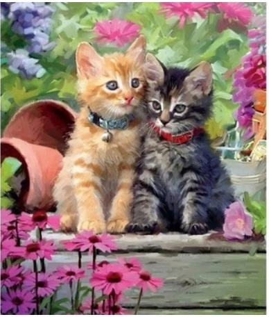 Malowanie Po Numerach Słodkie Kotki Z Obrożami W Ogrodzie 40x50 Z Ramą