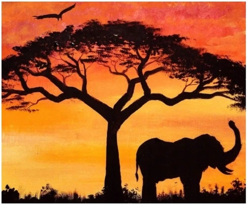 Malowanie Po Numerach Słoń, Dzrewo Cienie