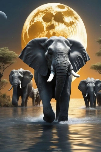 Malowanie Po Numerach Słonie Na Tle Księżyca 50X40 Cm Z Ramą Kreatywne