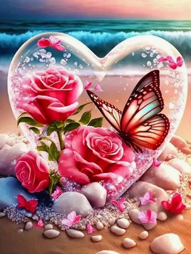 Malowanie Po Numerach Szklane Serce Na Wybrzeżu Z Różą 40X50 Cm Na Ramie