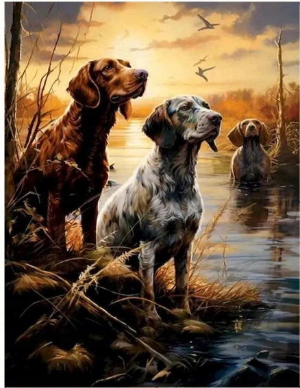 Malowanie Po Numerach Trzy Psy Na Mokradłach 50X40 Cm Z Ramą Kreatywne