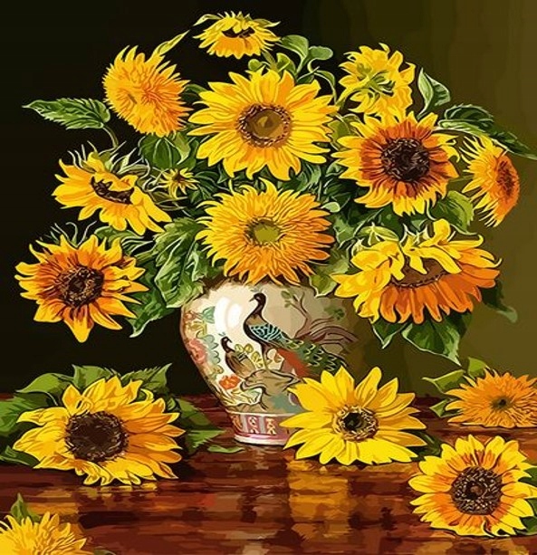 Malowanie Po Numerach Wazon Słoneczników 50X40 Cm Z Ramą Kreatywne
