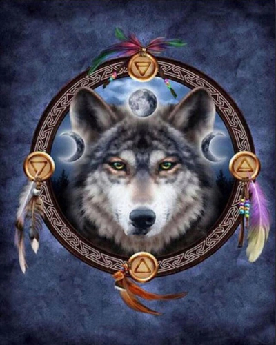 Malowanie Po Numerach Wilk w Łapaczu Snów 50X40 Cm Na Ramie Kreatywne