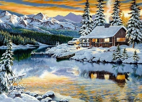 Malowanie Po Numerach Zaśnieżona Chata Nad Jeziorem 50X40 Z Ramą Kreatywne