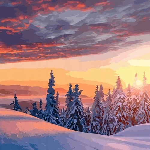 Malowanie Po Numerach Zimowy Krajobaz Ze Szlaku Zachód Słońca 50X40 Z Ramą