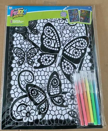 MALOWANKA VELVET MOTYLE 28X38CM pak 144/12 w komplecie 2 malowanki z welwetowymi wykończeniami, 6 kolorowych pisaków