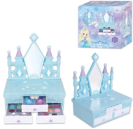 trzy szufladki z kosmetykami do makijażu dla dzieci