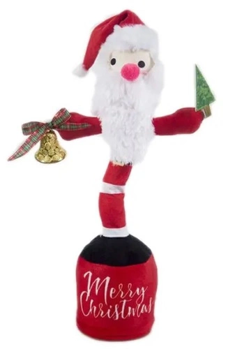 MIKOŁAJ W WORKU ŚWIĄTECZNYM TAŃCZĄCY I ŚPIEWAJĄCY, PAK 100 tańczy i gra różne świąteczne melodie zawiera kabel USB, wymaga 3 baterii AA (są dołaczone do zestawu)
