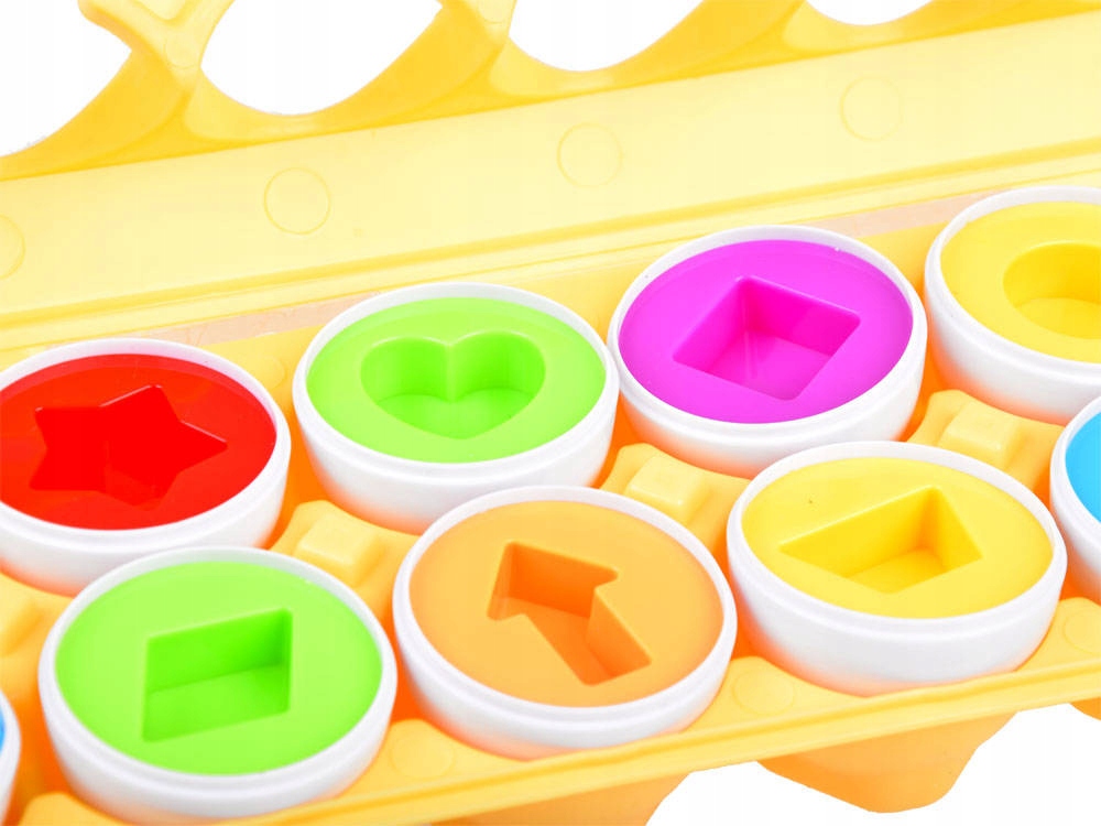 Zabawka Jajka Edukacyjne to kolorowy zestaw rozwijający wyobraźnię i zdolności manualne dziecka. Każde jajeczko kryje w sobie niespodziankę w postaci kształtu, który należy dopasować do odpowiedniej połówki. Dzięki temu maluch w naturalny sposób uczy się rozpoznawania figur i kolorów, a jednocześnie ćwiczy spostrzegawczość.
