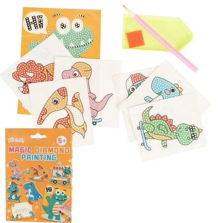 MOZAIKA DIAMENTOWA DINOZAURY, ZESTAW (6xNAKLEJKA, 1xZAWIESZKA, 1xKARTA/POCZTÓWKA) , pak -250, Wymiary : 17cm x 12cm x 3cm