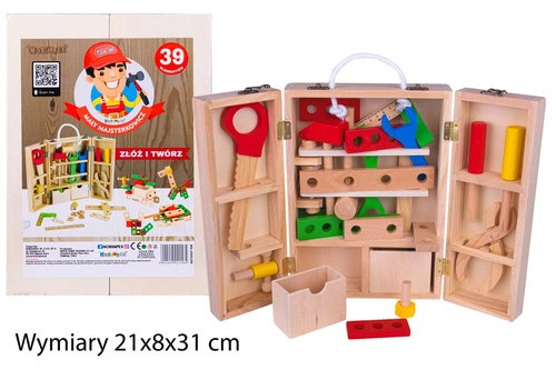 NARZĘDZIA DREWNIANE W ZAMYKANEJ SKRZYNCE / 20 Wymiary 21x8x31 cm Waga : 1245g