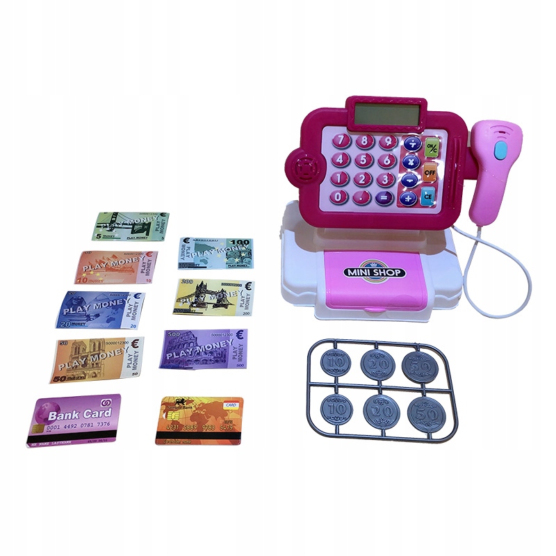 - Realistyczne efekty dźwiękowe i świetlne: Nakieruj skaner na produkt, naciśnij guzik, a skaner wyda dźwięk i zaświeci się czerwone światło, sygnalizując poprawne zeskanowanie produktu. Na wyświetlaczu pojawi się cena do zapłaty, co dodatkowo angażuje dzieci w symulację procesu zakupowego.