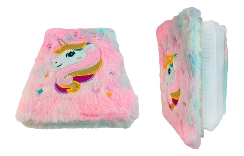 pluszowy pamiętnik/dziennik/zeszyt, jednorożec z gwiazdkami, serduszkami i brokatową grzywą, różne kolory, 80 stron,