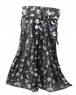Peleryna czarownicy w kolorze czarnym ze srebrnymi zdobieniami to idealny element stroju na halloweenowe zabawy, bale przebierańców czy tematyczne przedstawienia. Wykonana z lekkiego, przewiewnego materiału, zapewnia komfort noszenia i swobodę ruchów, dzięki czemu dziecko może w pełni cieszyć się zabawą. Srebrne wzory w postaci nietoperzy, czarownic na miotle i gwiazd dodają jej wyjątkowego, magicznego charakteru.
