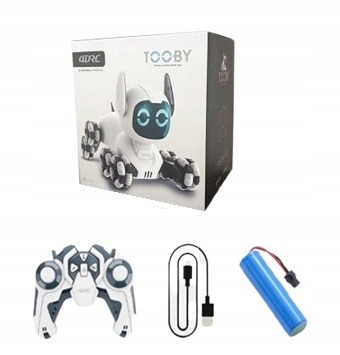 - W zestawie: pies robot, pilot, akumulatorek, kabel USB do ładowania