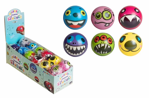 PIŁECZKA PIANKOWA Z BUZIĄ STWORKI* 24 BOX pak-480 średnica piłeczki 5,5 cm 6 wzorów , każda zapakowana w oddzielnym woreczku z etykietą