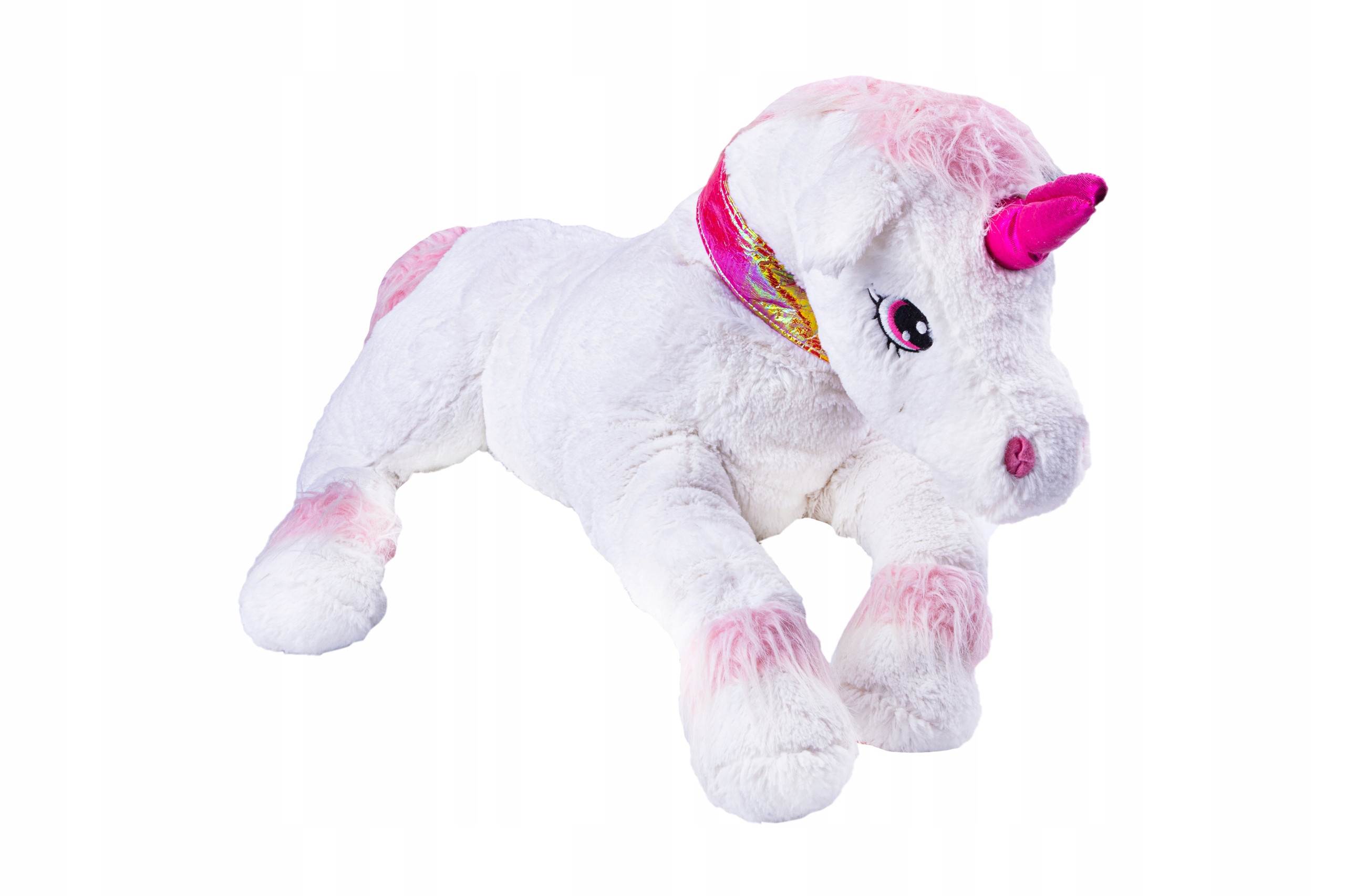 wyjątkowa zabawka, która łączy w sobie miękkość, delikatność i magiczny wygląd rodem z bajki. Jego różowy, brokatowy róg błyszczy w świetle niczym prawdziwy klejnot, a tęczowa, błyszcząca obroża dodaje mu elegancji i sprawia, że wygląda jeszcze bardziej magicznie. Całość dopełniają wyszyte gwiazdki na grzbiecie.