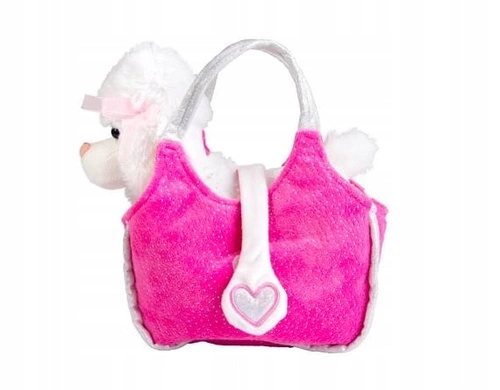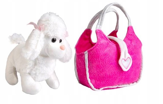 Zawartość zestawu: pluszowy pies pudel, różowa torebka