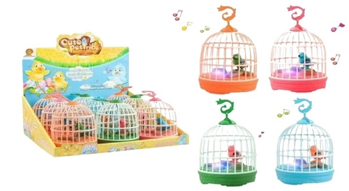 PTASZEK ŚPIEWAJĄCY W KLATCE, pak 108/54, cztery wzory, dźwięk, zabawka wymaga baterii 3*AA, display 9, wymiary klatki: 9 x 9 x 15 cm, wymiary display: 29 x 28 x 30,5 cm