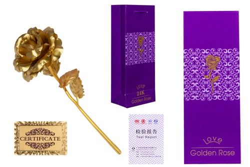 RÓŻA ZŁOTA KARTON FIOLET+ TOREBKA / 100
