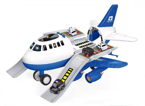 SAMOLOT ROZKŁADANY POLICYJNY + POJAZDY, pak 24, światło/dźwięk, samochodziki wymiary opakowania: 37 x 14,8 x 27 cm
