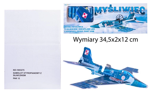 SAMOLOT STYROPIANOWY Z SILNICZKIEM ZE ŚWIATŁAMI LED PAK 200 Wymiary 34,5x2x12 cm ns19-373