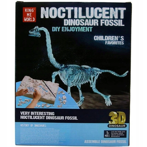 To doskonała zabawka edukacyjna, która łączy elementy nauki i rozrywki, pobudzając ciekawość i wyobraźnię dziecka. Zawartość zestawu: skamielina z błyszczącym modelem dinozaura