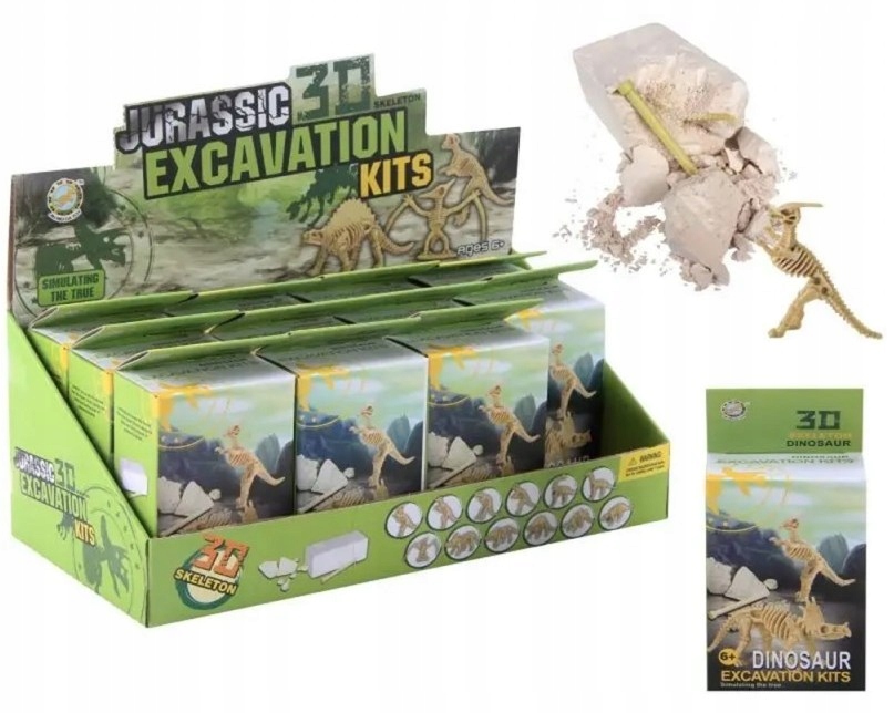 Skamielina Szkielet Dinozaura w Bloku Gipsu to niezwykła zabawka edukacyjna, która przenosi dziecko w świat prehistorycznych tajemnic. W każdym pudełku ukryty jest szkielet jednego z 12 różnych dinozaurów, czekających na odkrycie. Proces wykopalisk to doskonałe połączenie zabawy z nauką i okazja do rozwijania cierpliwości oraz precyzji.