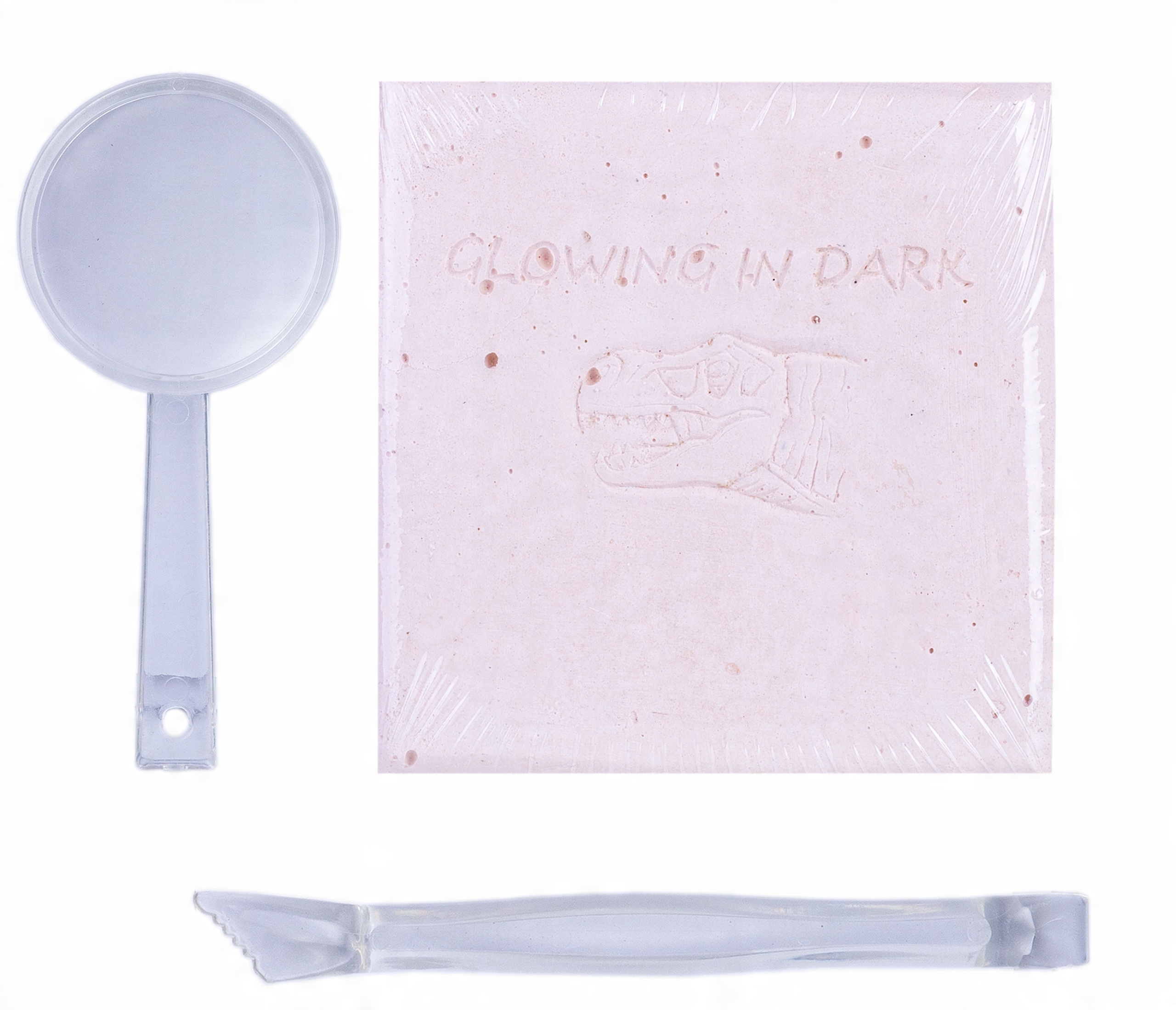 Teraz można złożyć wykopane kości dinozaura tak, aby zbudować model dinozaura o długości około 18-28 cm, który świeci w ciemności, Kości są zrobione z materiału fluoryzującego.
