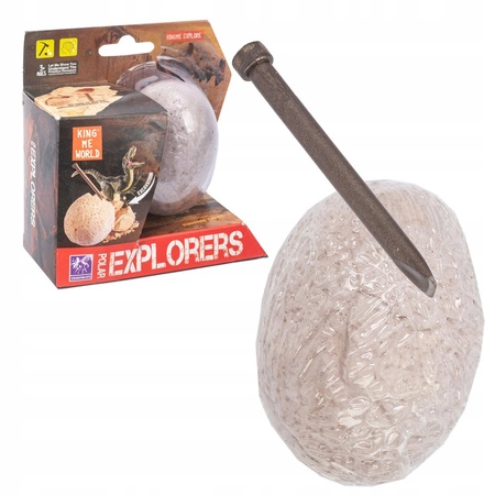 Skamielina Jajo Dinozaura Explorers to wyjątkowa zabawka, która pozwala dzieciom poczuć się jak prawdziwi archeolodzy. Każde jajko skrywa w sobie niespodziankę w postaci figurki dinozaura, którą należy wydobyć przy pomocy dołączonego narzędzia. To doskonałe połączenie nauki i zabawy, które rozwija cierpliwość, spostrzegawczość oraz zdolności manualne.