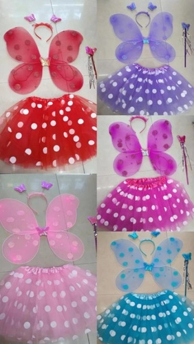 STRÓJ MOTYLA ZE SPÓDNICZKĄ W GROSZKI, pak 200 pięć wariantów kolorystycznych, w zestawie: skrzydła spódniczka, opaska, różdżka