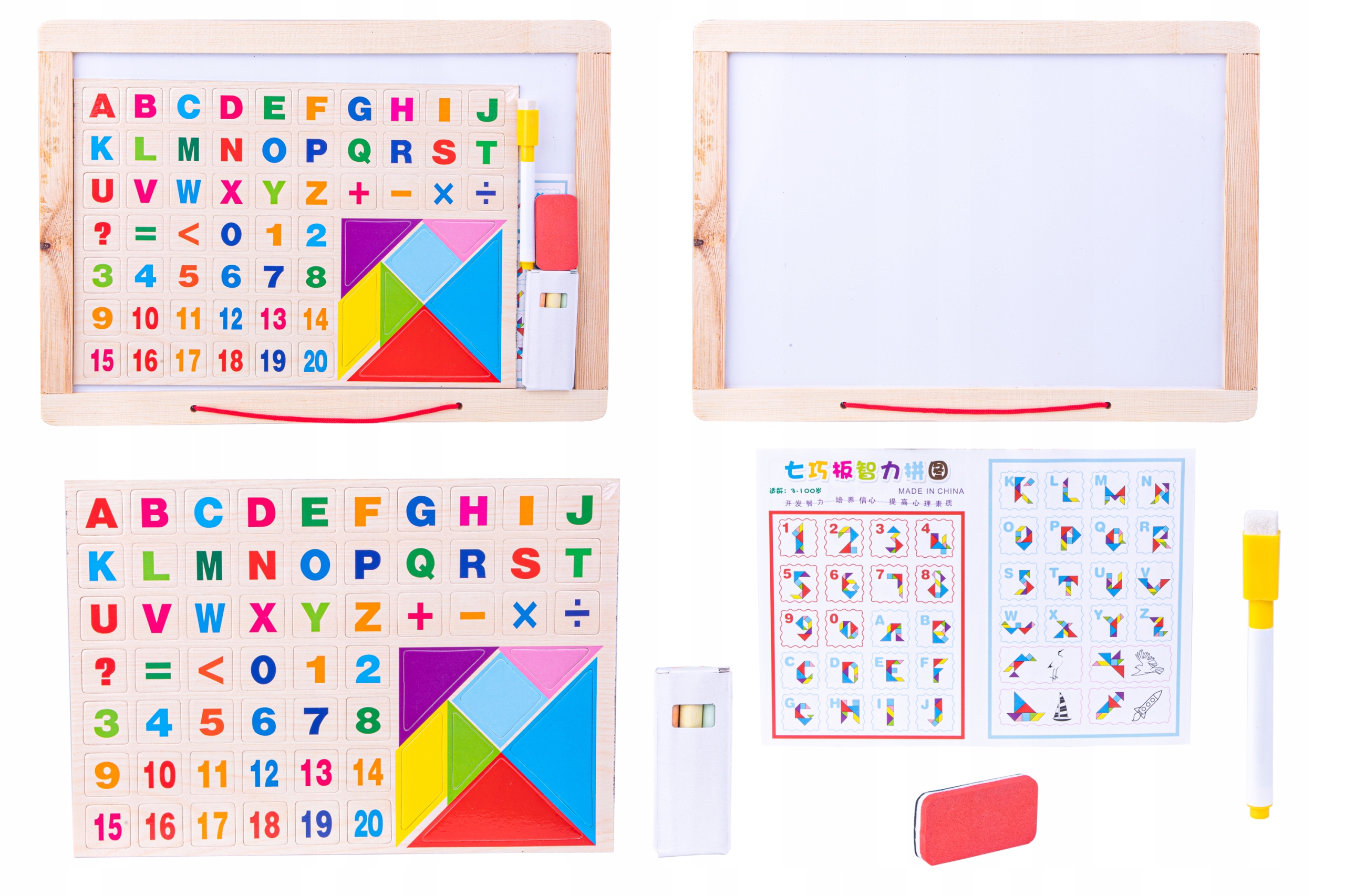 Tablica Układanka Dwustronna Z Pisakami I Kredą Edukująca Litery Kształty