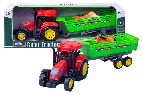 TRAKTOR FARM Z ŚW,DŹW Z PRZYCZEPĄ+ KOŃ KARTON OTWARTY / 48/24