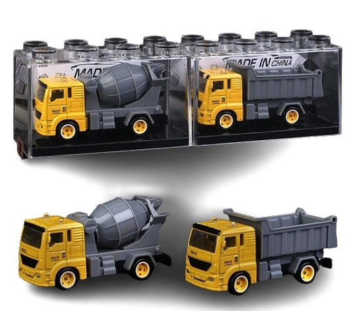 TRUCK BETONIARKA/WYWROTKA W KLOCKU, pak 192/96 ciężarówka w dwóch różnych wzorach w klocku- z betoniarką lub wywrotką, wymiary klocka: 8,9 x 4,4 x 6,1 cm