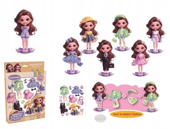 Układanka została zaprojektowana tak, aby zachwycić dzieci estetyką i jakością wykonania. Zestaw idealnie sprawdzi się zarówno w domu, jak i w podróży, dzięki kompaktowym wymiarom i wygodnemu opakowaniu. Wszystkie elementy są trwałe i estetycznie wykonane, a magnetyczna forma zabawy sprawia, że dziecko może eksperymentować z modą w bezpieczny i twórczy sposób.