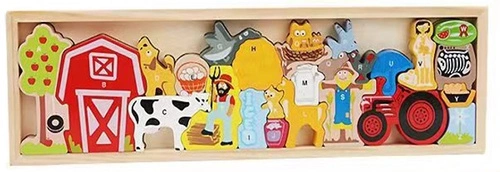 UKŁADANKA FARMA DREWANIANA W RAMCE, pak 48, edukacyjna układanka w drewnianej ramce do nauki alfabetu, wymiary: 45 x 14 x 1,8 cm