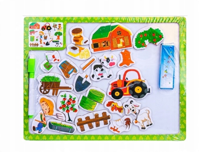 - Puzzle magnetyczne: Zestaw zawiera również zestaw magnetycznych puzzli. To dodatkowy element, który pozwala na tworzenie różnorodnych scenariuszy i opowieści na tablicy. Dzieci mogą układać obrazki, zmieniać je według własnych pomysłów i eksplorować różne tematy.