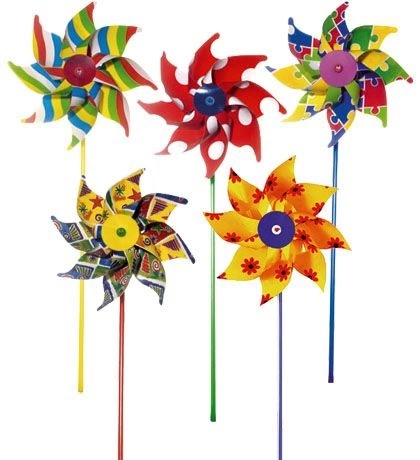 WIATRAK 16CM KOLoR WZORY FALA PLASTIK KIJEK OP 72/432