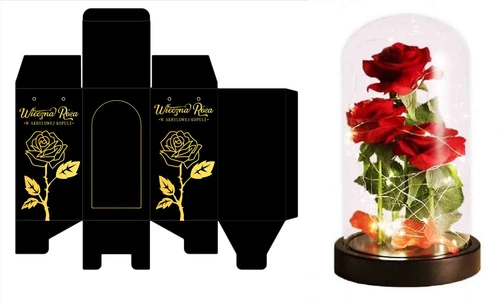 WIECZNA RÓŻA ŚWIECĄCA POD KOPUŁĄ W SZKLE NA PREZENT WALENTYNKI + KABEL USB
