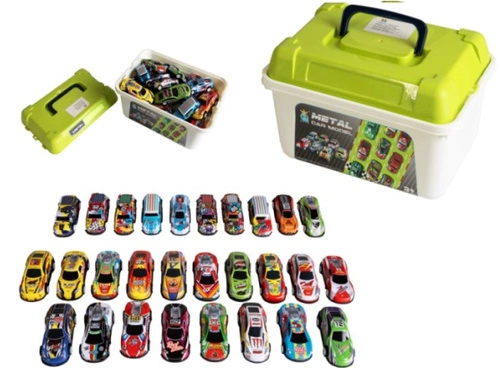 ZESTAW AUT METAL CAR 40 SZTUK W SKRZYNCE Z RĄCZKĄ pak 48- 40 metalowych samochodzików w skrzynce z naciągiem wymiar autka: 7 x 3 x 2 cm, wymiar skrzynki: 20 x 14 x 11 cm
