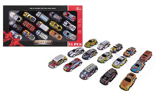 ZESTAW AUTEK SAMOCHODÓW AUTA RESORAKI 15 SZT Z NAPĘDEM KOLEKCJA